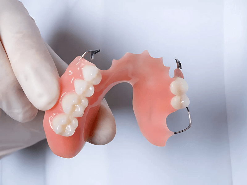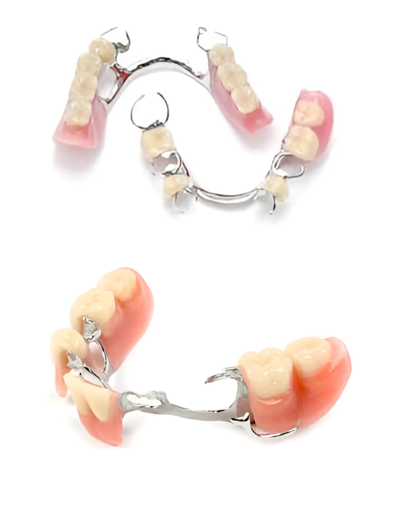 - Ones having a metal framework for rigidity and the teeth are the same kind used in full dentures
