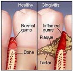 - Gingivitis is one of the most common gum problems. Bacteria trapped between the gums and the teeth lead to infection and inflammation. Typical symptoms of gingivitis include gum redness, swelling, tenderness, and bleeding. However, gum disease may also progress with no noticeable symptoms. Patients who allow plaque to build up along their gum line are at high risk for developing gingivitis. Patients who have regular prophylactic cleanings to remove plaque and follow a dentist-recommended oral hygiene routine at home experience a lower risk of gum disease.