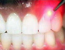 Lasers In Perio- Periodontal treatments including scaling and root planning can be performed using lasers, in conjunction with hand tools. The laser destroys bacteria, removes diseased gum tissue, and seals the pocket to help keep food and germs out. Laser treatment promotes faster healing, minimizes bleeding, reduces discomfort, and limits the chances of infection. Lasers are also used to reshape a patient’s gum line. Patients who have a “gummy” smile which makes their teeth look short or uneven may request this crown lengthening procedure.